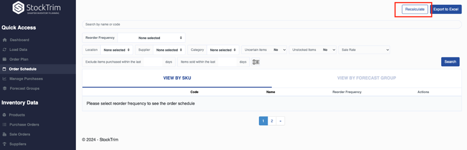 The order schedule in StockTrim provides an insight into the future of your inventory ordering requirements and stock levels.